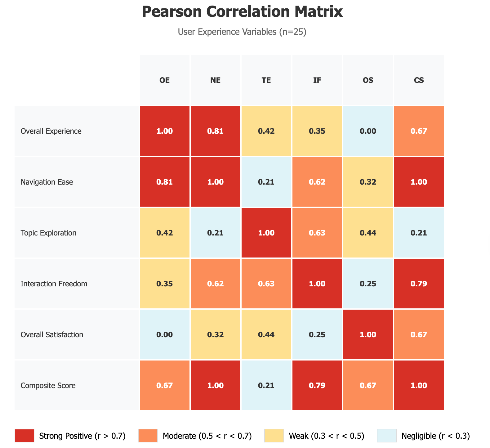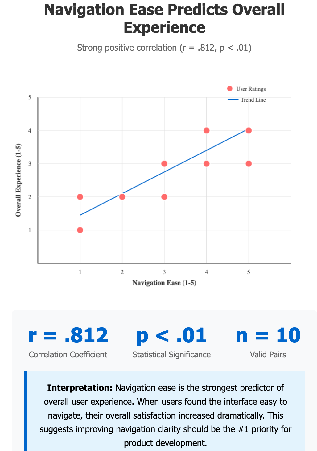 Navigation ↔ Overall Experience: r = .812, p < .01