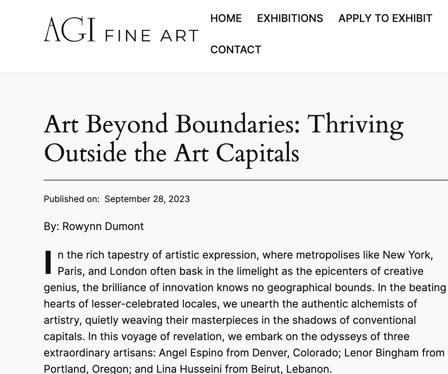 Art Beyond Boundaries: Thriving Outside the Art Capitals — AGI Fine Art